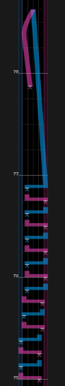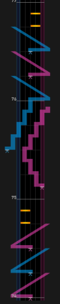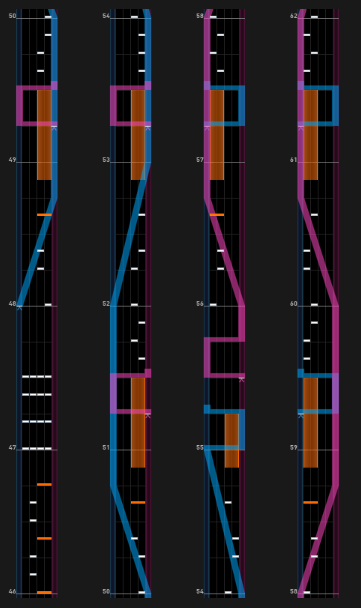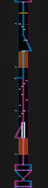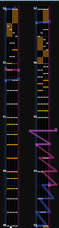 61~64小節目。最難所。51小節目の形を発展させたものだが、63小節目がすごいことになっている。つまみに気を取られすぎるとNearが出るので注意。癖が付きそうだったらミラーも視野に入れる。