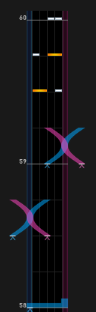 Xつまみが特徴的な地力譜面。鍵盤の配置自体は単純なので、曲のリズムがわかっていればそんなに難しくない。